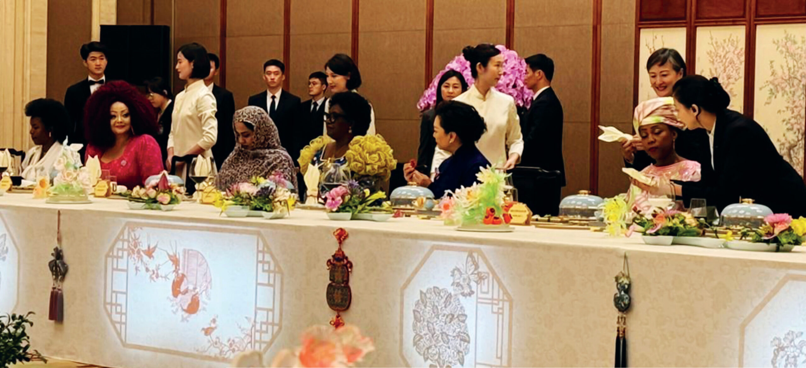 Dans un tourbillon de fleurs et de parfums, le pavillon Feng Feiyuan de la résidence des hôtes de Diaoyutai à Pékin accueille les Premières Dames du Continent africain.
